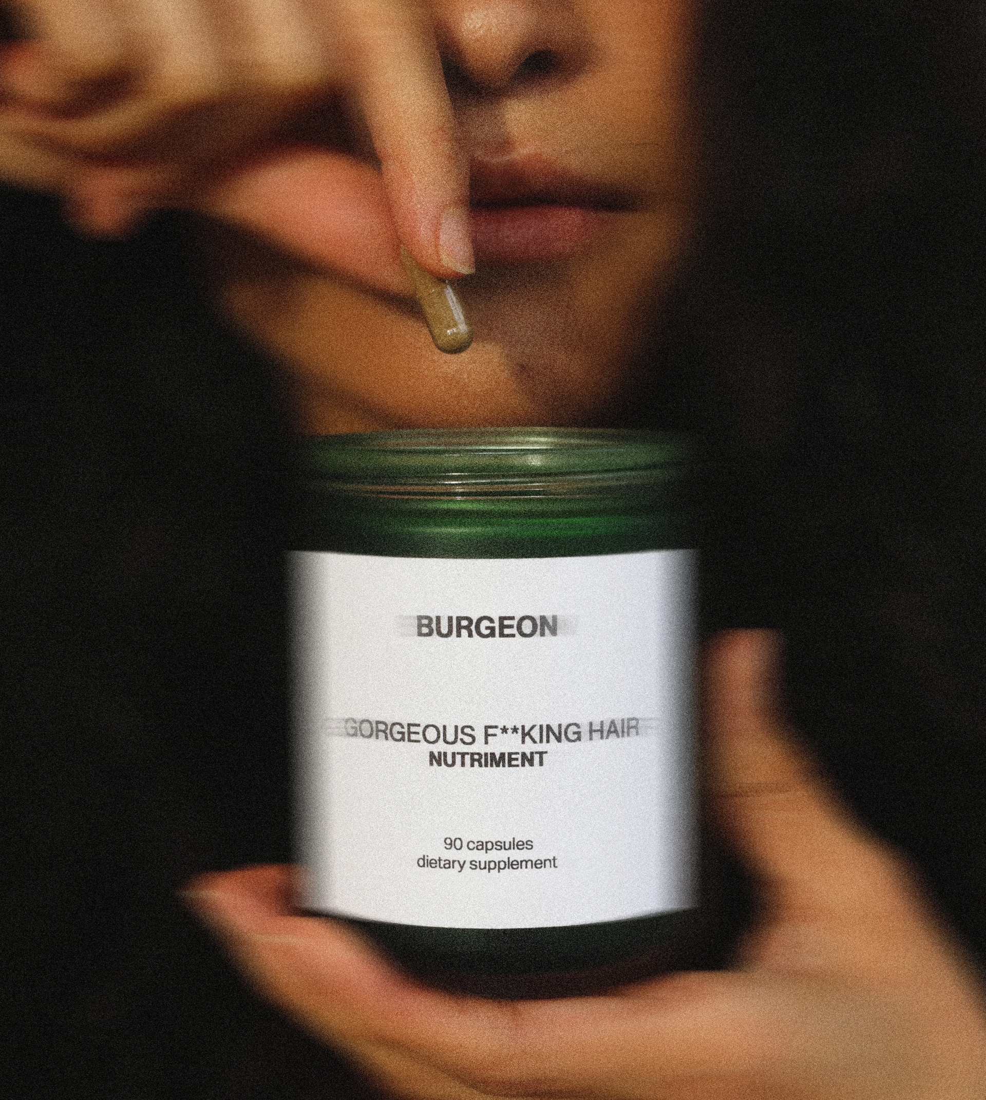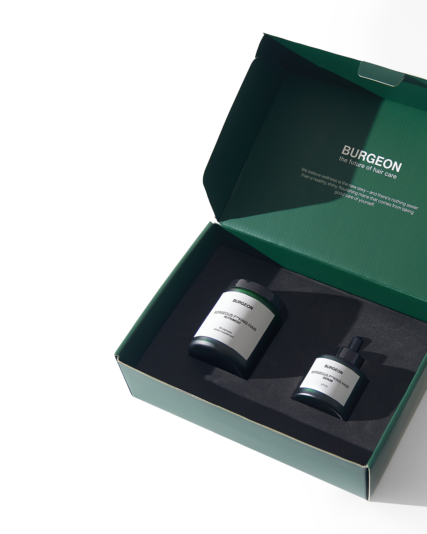 Nourish and replenish your hair from the inside with Burgeon Nutriment, and above and below scalp’s surface with Burgeon Serum.