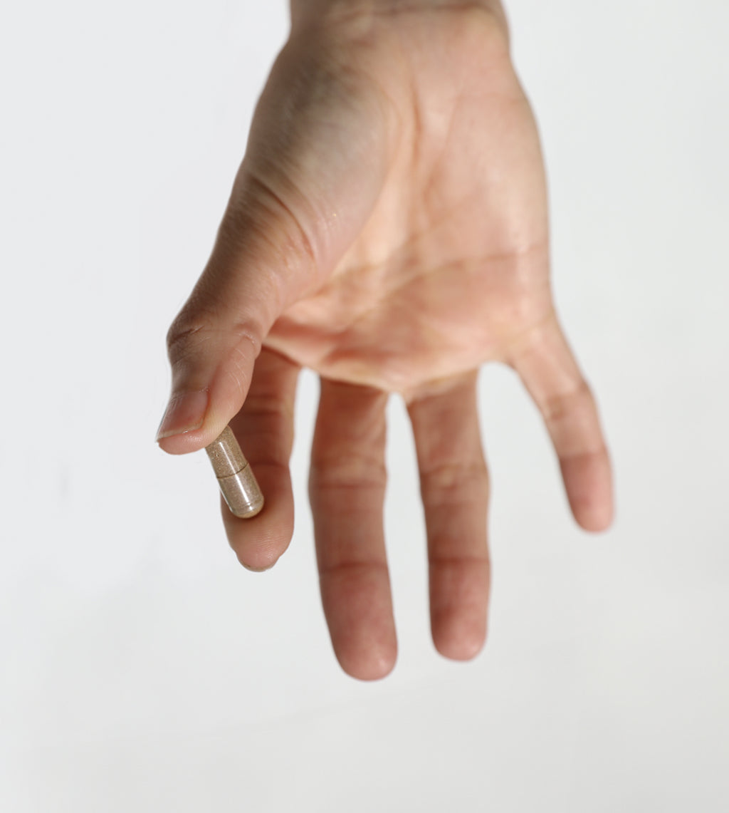 Gotu Kola Herb Extract, Green Tea Leaf Extract, Probiotic Blend @100billion CFU/g, Knotweed Root Extract @ 50% Resveratrol, Holy Basil Leaf Extract, Ashwagandha Root Powder, Chamomile Flower Extract, Foti Root Powder, Guava Leaf Extract, Lion’s Mane Extract @70% Beta Glucan, Nettle Root Extract, Rhondiola Rosea Root Extract, Bamboo Extract, Pumpkin Seed Extract, Bladderwrack Macroalgae Other ingredients: Vegan capsule, organic prebiotic fiber powder; Inulin, natural rice extract.